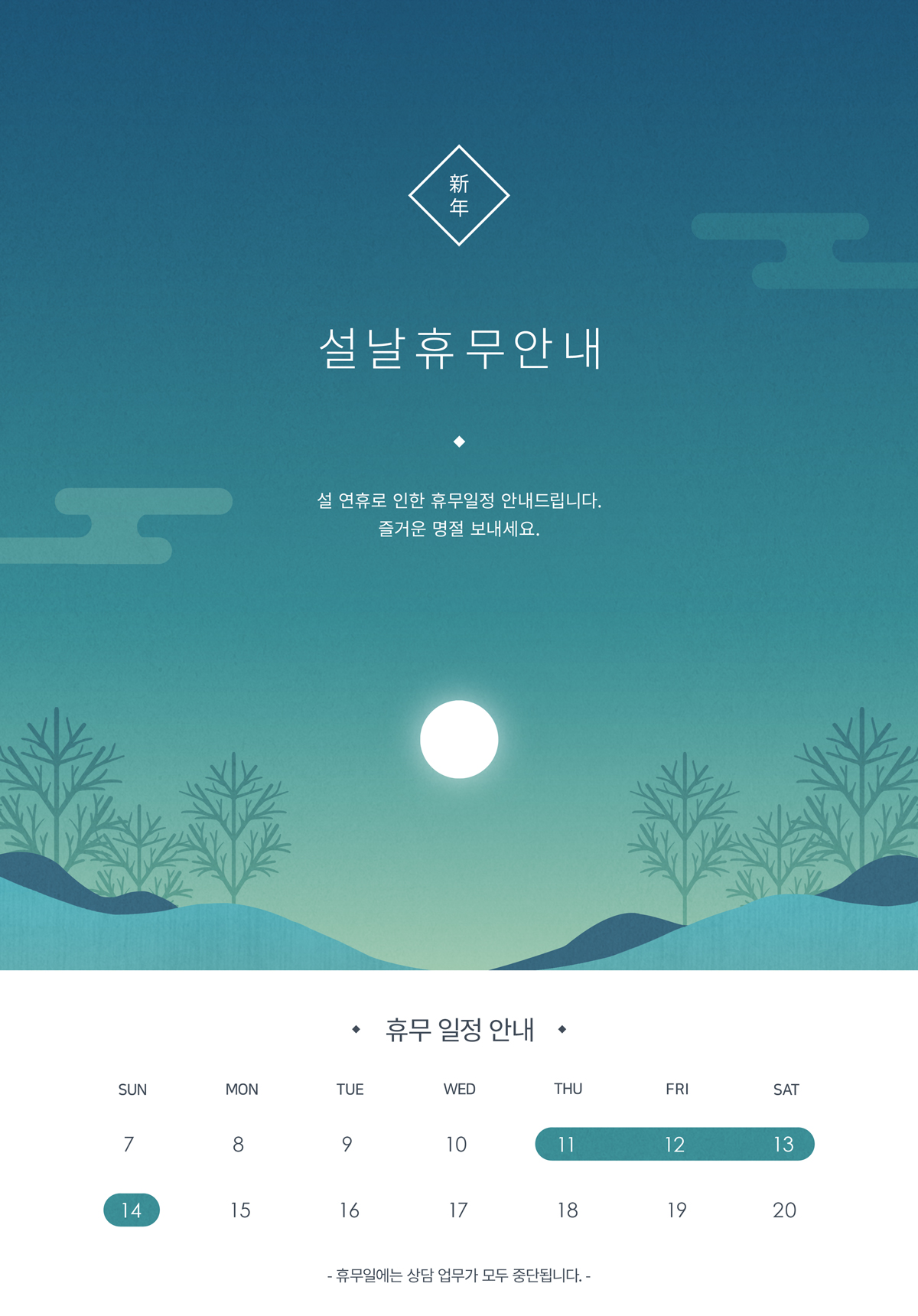 13 2024 ¼³¸íÀý ÈÞ¹«¾È³». °ü¸®ÀÚ 2024-02-07 1061